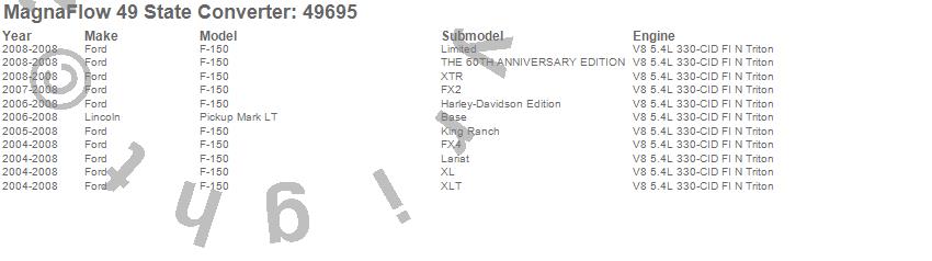 Below is an abreviated list of applications for the Direct Fit Catalytic Converter.