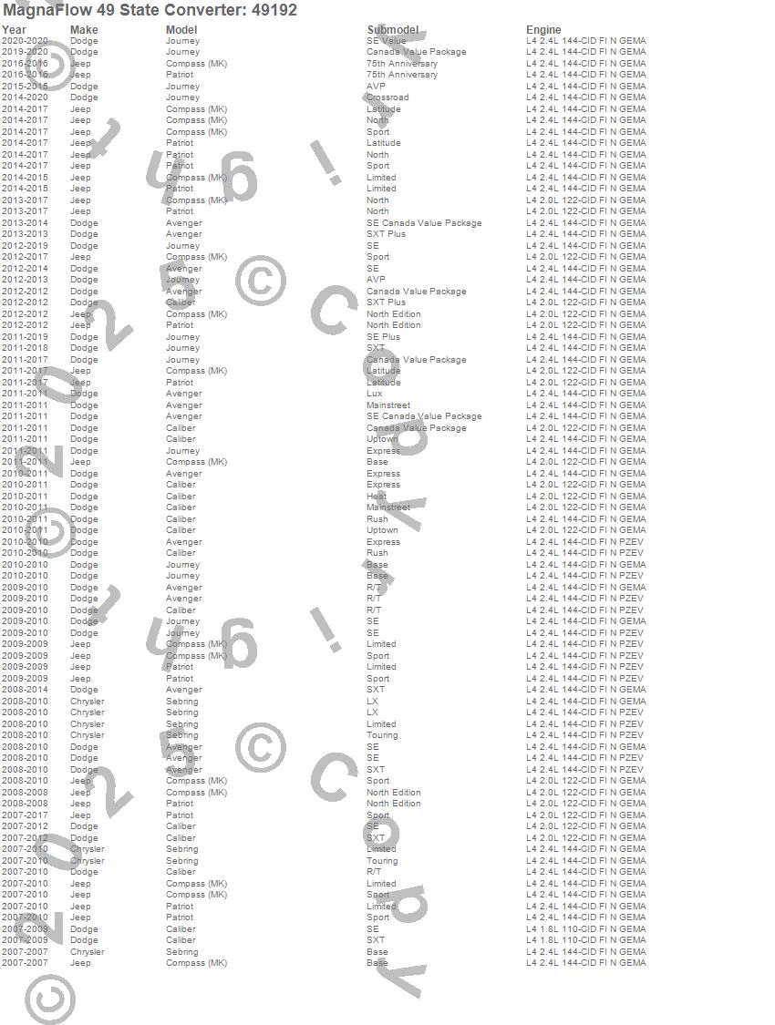 Below is an abreviated list of applications for the Direct Fit Catalytic Converter.