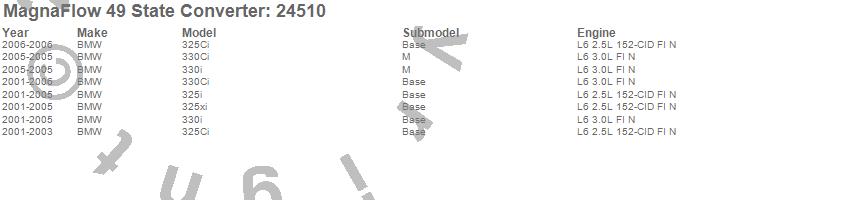 Below is an abreviated list of applications for the Direct Fit Catalytic Converter.