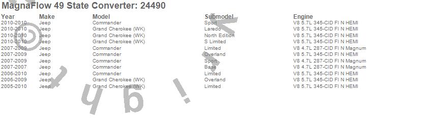 Below is an abreviated list of applications for the Direct Fit Catalytic Converter.