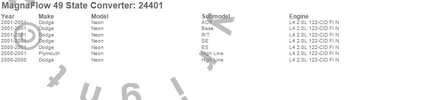 Below is an abreviated list of applications for the Direct Fit Catalytic Converter.