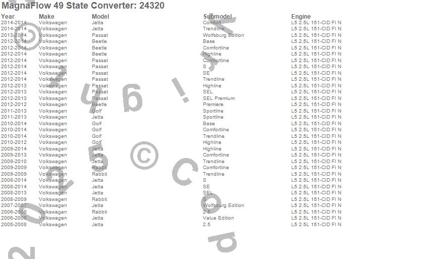 Below is an abreviated list of applications for the Direct Fit Catalytic Converter.