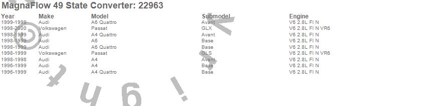 Below is an abreviated list of applications for the Direct Fit Catalytic Converter.