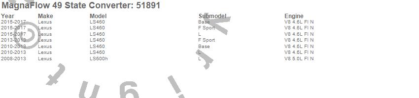 Below is an abreviated list of applications for the Direct Fit Catalytic Converter.