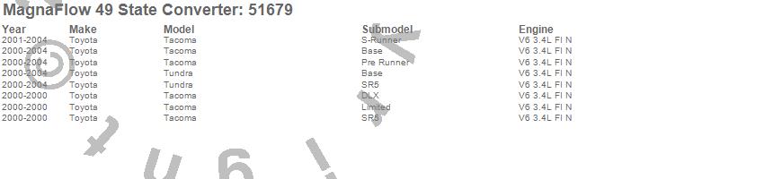 Below is an abreviated list of applications for the Direct Fit Catalytic Converter.