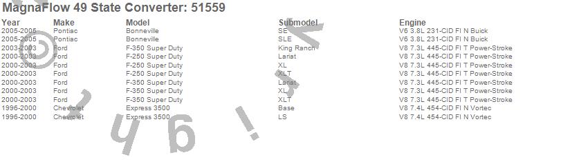Below is an abreviated list of applications for the Universal-Fit Catalytic Converter.