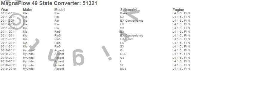 Below is an abreviated list of applications for the Direct Fit Catalytic Converter.