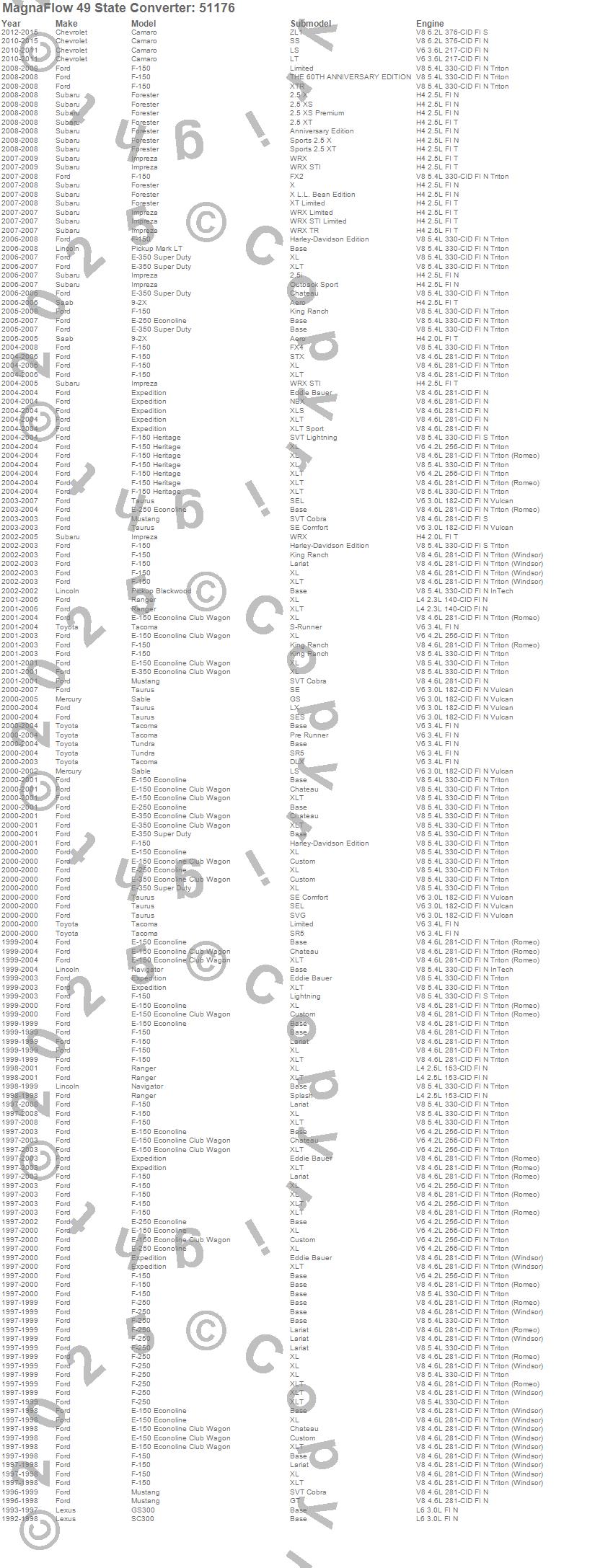 Below is an abreviated list of applications for the Universal-Fit Catalytic Converter.