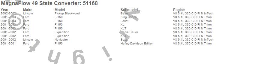 Below is an abreviated list of applications for the Direct Fit Catalytic Converter.