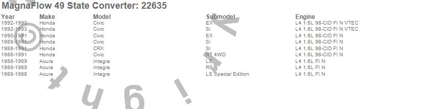 Below is an abreviated list of applications for the Direct Fit Catalytic Converter.