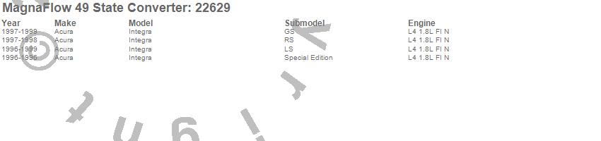 Below is an abreviated list of applications for the Direct Fit Catalytic Converter.
