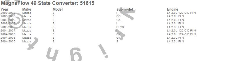 Below is an abreviated list of applications for the Direct Fit Catalytic Converter.