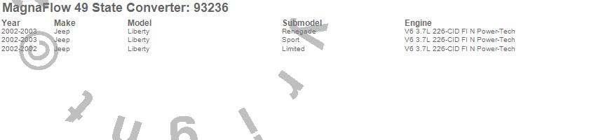 Below is an abreviated list of applications for the 93000 Series Direct Fit Catalytic Converter.