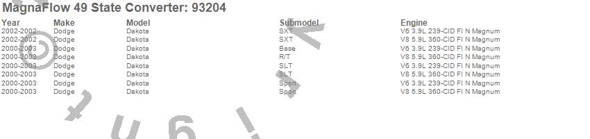 Below is an abreviated list of applications for the 93000 Series Direct Fit Catalytic Converter.