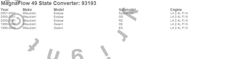 Below is an abreviated list of applications for the 93000 Series Direct Fit Catalytic Converter.