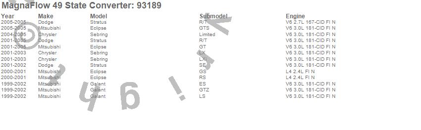 Below is an abreviated list of applications for the 93000 Series Direct Fit Catalytic Converter.