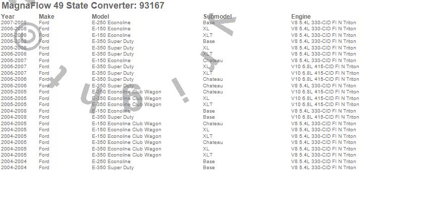 Below is an abreviated list of applications for the 93000 Series Direct Fit Catalytic Converter.