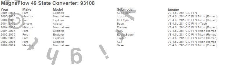 Below is an abreviated list of applications for the 93000 Series Direct Fit Catalytic Converter.