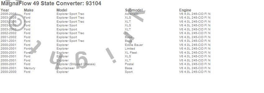 Below is an abreviated list of applications for the 93000 Series Direct Fit Catalytic Converter.