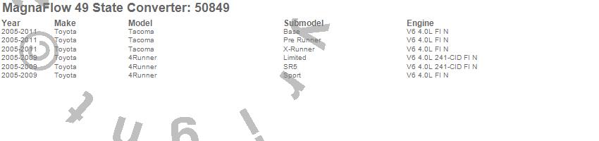 Below is an abreviated list of applications for the Direct Fit Catalytic Converter.