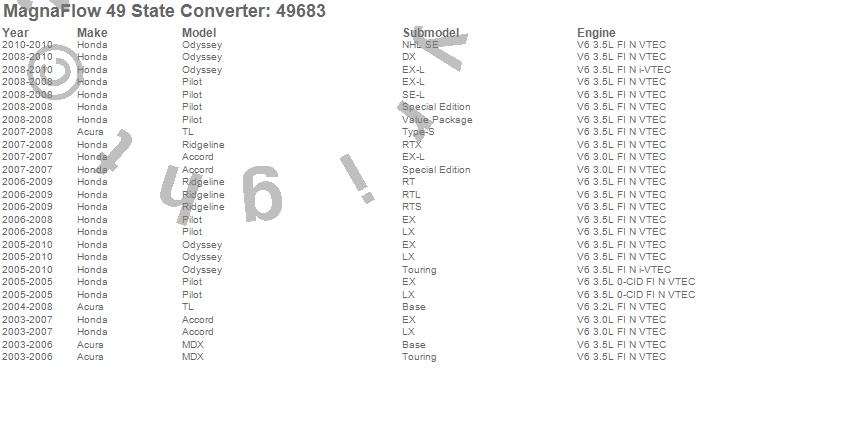 Below is an abreviated list of applications for the Direct Fit Catalytic Converter.