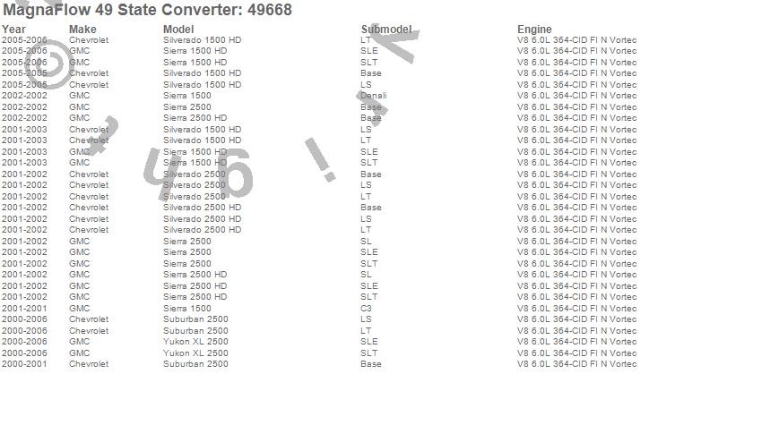 Below is an abreviated list of applications for the Direct Fit Catalytic Converter.