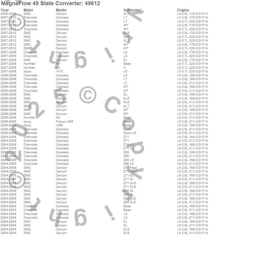 Below is an abreviated list of applications for the Direct Fit Catalytic Converter.