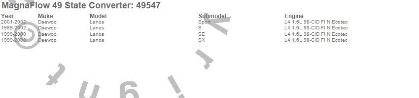 Below is an abreviated list of applications for the Direct Fit Catalytic Converter.