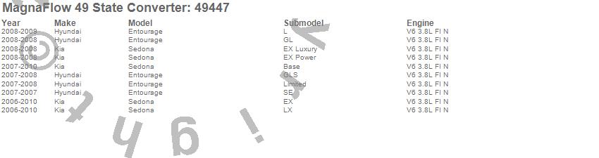 Below is an abreviated list of applications for the Direct Fit Catalytic Converter.