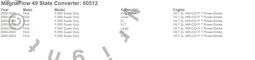 Below is an abreviated list of applications for the Direct Fit Diesel Catalytic Converter.