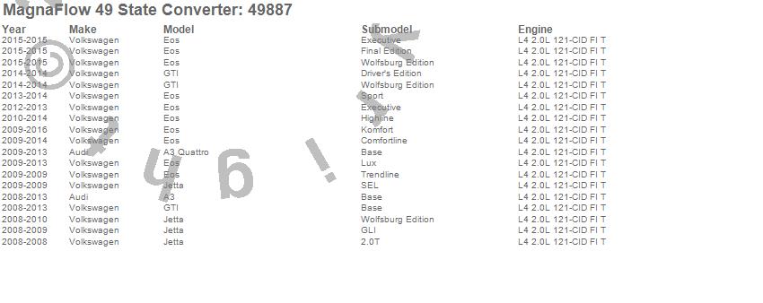 Below is an abreviated list of applications for the Direct Fit Catalytic Converter.
