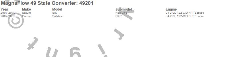 Below is an abreviated list of applications for the Direct Fit Catalytic Converter.