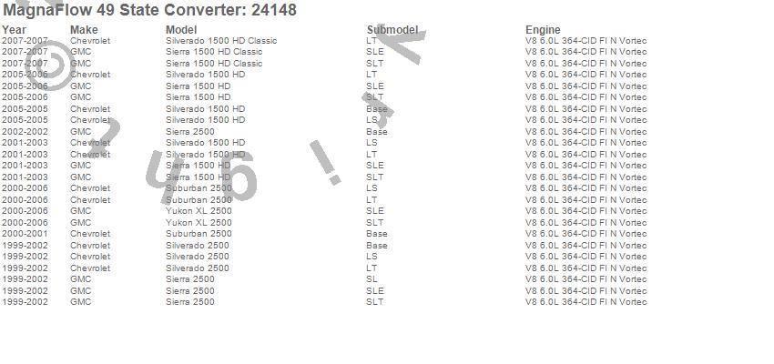 Below is an abreviated list of applications for the Direct Fit Catalytic Converter.