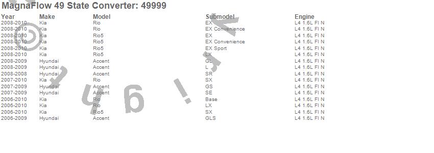 Below is an abreviated list of applications for the Direct Fit Catalytic Converter.