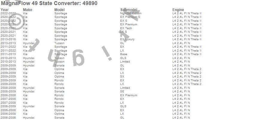 Below is an abreviated list of applications for the Direct Fit Catalytic Converter.