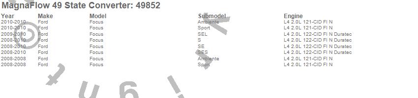 Below is an abreviated list of applications for the Direct Fit Catalytic Converter.