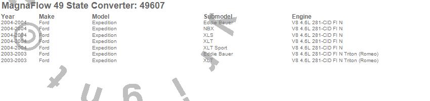 Below is an abreviated list of applications for the Direct Fit Catalytic Converter.