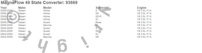 Below is an abreviated list of applications for the 93000 Series Direct Fit Catalytic Converter.