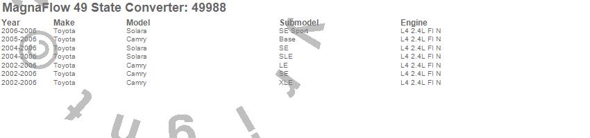Below is an abreviated list of applications for the Direct Fit Catalytic Converter.