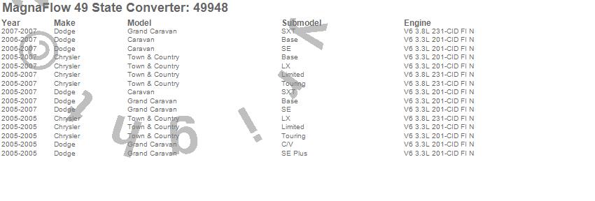 Below is an abreviated list of applications for the Direct Fit Catalytic Converter.