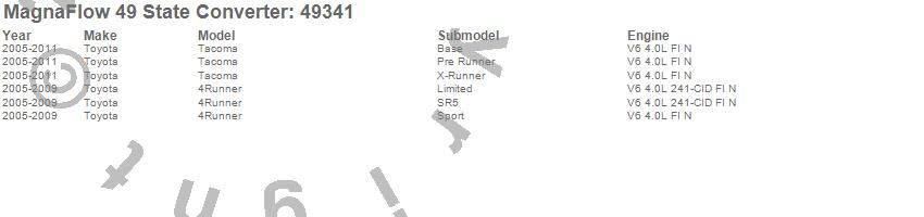 Below is an abreviated list of applications for the Direct Fit Catalytic Converter.
