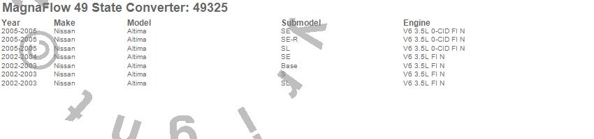 Below is an abreviated list of applications for the Direct Fit Catalytic Converter.