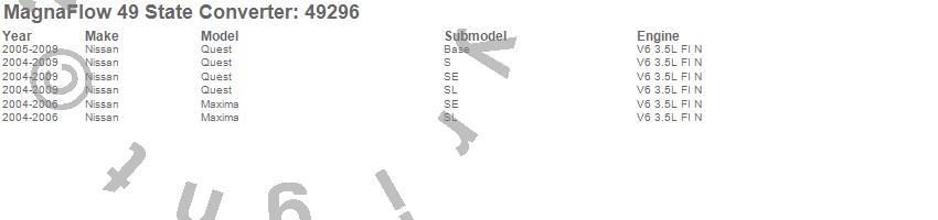 Below is an abreviated list of applications for the Direct Fit Catalytic Converter.