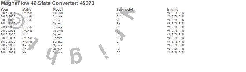 Below is an abreviated list of applications for the Direct Fit Catalytic Converter.