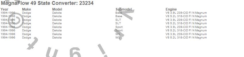 Below is an abreviated list of applications for the Direct Fit Catalytic Converter.