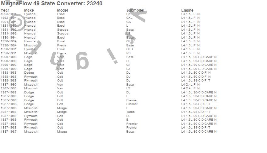 Below is an abreviated list of applications for the Direct Fit Catalytic Converter.