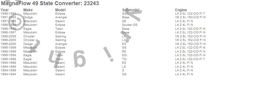 Below is an abreviated list of applications for the Direct Fit Catalytic Converter.