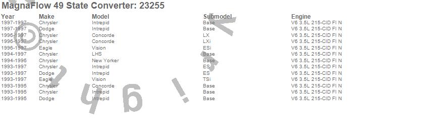 Below is an abreviated list of applications for the Direct Fit Catalytic Converter.