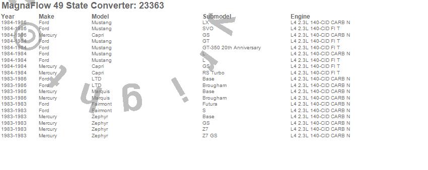 Below is an abreviated list of applications for the Direct Fit Catalytic Converter.