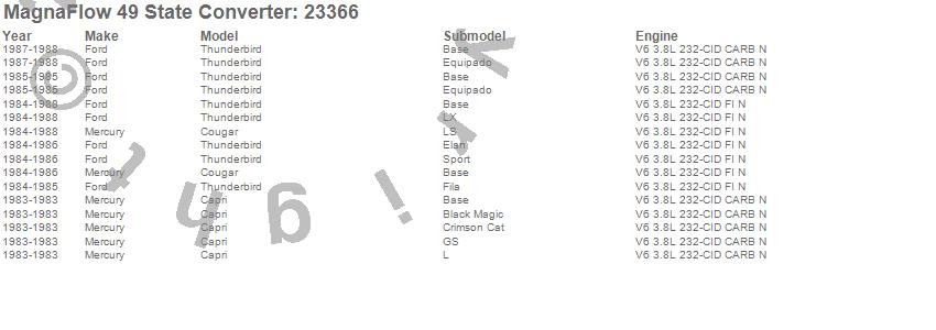 Below is an abreviated list of applications for the Direct Fit Catalytic Converter.